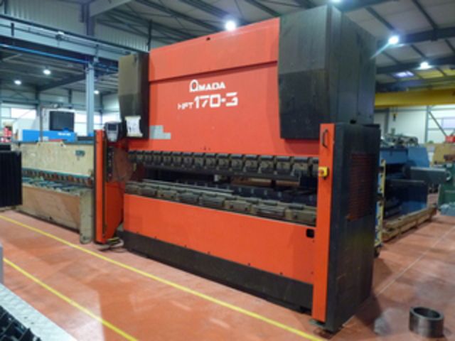 FMO bietet AMADA Abkantpressen vom Typ: HFT 170-3 an, die sich durch eine numerische Steuerung AMADA CF 2000 mit 4 Achsen (Y1-Y2-XR), einer maximalen Länge von 3100 mm, einer Arbeitsgeschwindigkeit von 10 mm auszeichnen / s und eine 420 mm Schwanenhalstiefe.