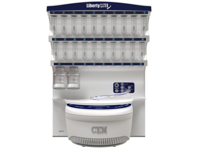 Eine Einstiegsoption für die weltweit anerkannte Liberty Blue Technologie. Der Liberty Lite bietet Vorteile gegenüber bestehenden Peptidsynthesizern durch den patentierten Einsatz von Mikrowellenbestrahlung während der Entschützungs- und Kopplungsschritte (15 Minuten Zykluszeit), In-situ-Temperaturkontrolle, Flex-Add™ Abgabesystem und effiziente Lösungsmittelverwendung. Zusätzlich kann das System jederzeit zu einem Liberty Blue System aufgerüstet werden.