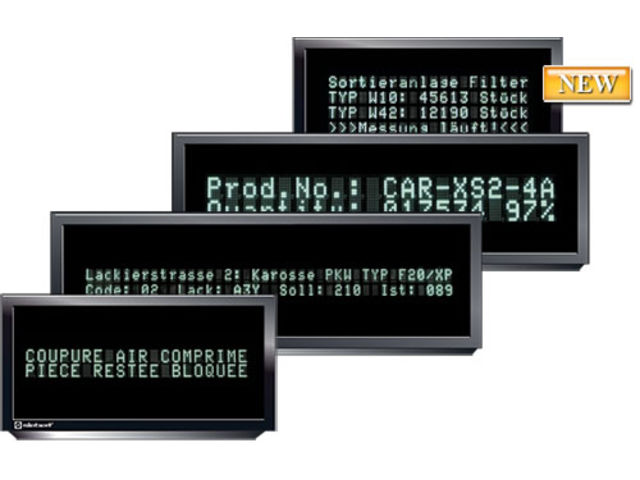 - 2 x 20 und 4 x 20 Zeichen mit 5 mm Zeichenhöhe; 2 x 20 Zeichen