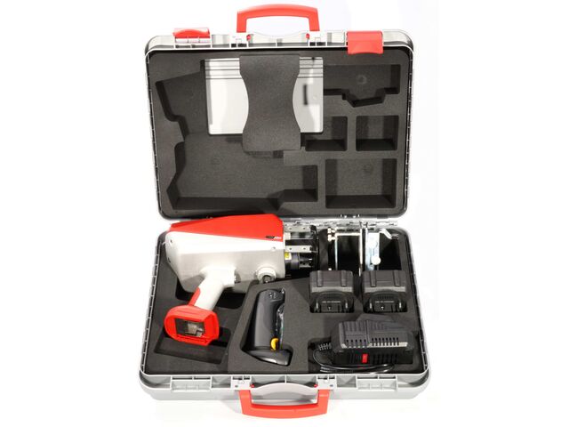 Im Lieferumfang enthalten ist ein zweiter Akku und ein Ladegerät. Ein Akku hat eine Laufzeit von etwa 1 - 4 Stunden im Handsigniergerät, die Ladezeit beträgt etwa eine Stunde. Das e-mark Handsigniergerät wird in einem stabilen Transportkoffer geliefert, der alle Teile enthält.