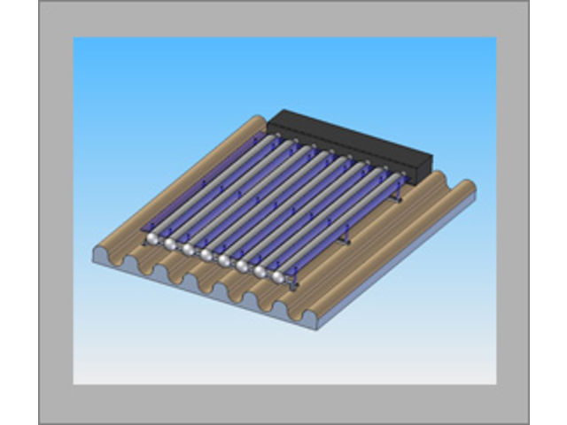Der patentierte Hagelschutz besteht aus mehreren Prallplatten aus einem durchsichtigen, schlagfesten Kunststoff. Diese werden mit ebenfalls durchsichtigen Abstandshaltern zwischen den einzelnen Solarröhren angebracht.