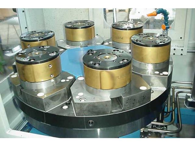 Diese auf dem Markt einmalige Ausführung ist ein innen mit Kraftverstärkung versehener, doppelt wirkender Zylinder. Um funktionsfähig zu sein, benötigt die Spindel eine Ölversorgung mit 70 bar Druck. Mit ihrem innen liegenden Kraftverstärker wird dieser Startdruck in einen Spanndruck von 5000 kg umgewandelt. Der automatische Öffnungs- und Schließweg beträgt 4 mm. Diese beiden Vorteile – Eingangsdruck von nur 70-bar und automatischer Hubweg – machen diese Spindel zum geeigneten Mittel für den Einsatz in horizontalen und vertikalen Bearbeitungszentren, die über ein Versorgungsaggregat für hydraulische Spannungen verfügen. Zudem ist sie von kurzer Länge und ihre Funktionsweise ist einfach. Über die Handkurbel wird die bewegliche Backe im Abstand von ca. 3 oder 4 mm vom zu spannenden Werkstück positioniert. Über ein Handventil oder ein CNC-gesteuertes Magnetventil der Maschine kann anschließend unter Hochdruck gespannt werden. Dank dieser Anordnung wird der Betrieb in Roboterprozessen möglich gemacht.