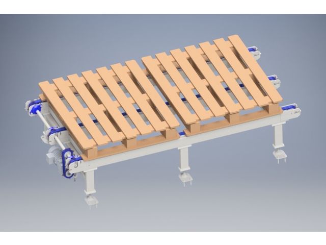 Dieser Kettenförderer gehört zu unserem Sortiment an stationären Förderern. Er ermöglicht die Bewegung/Förderung von Waren auf Paletten, bis zu 1200kg pro Palette.