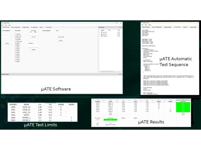Mit der Software „Spider Test” kann der Benutzer Testsequenzen mit Grenzwerten (grafische Fehlersuche, Pin-Konfiguration, Bildanalyse, Funktionssequenz) erstellen und die Ergebnisse anzeigen.