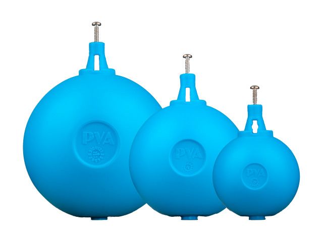 Die HD-PE Schwimmerkugeln sind bis 70°C temperaturbeständig. Von DRM 90 bis 300mm in blau und schwarz lieferbar.