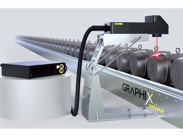 “ Die Ausrüstung zur Lasermarkierung Graphix inline ermöglicht eine extrem schnelle und hochwertige Markierung einer breiten Auswahl von Materialien. Die Integration des kompakten Geräts wird durch seinen extrem kleinen Markierkopf erleichtert. Graphix inline ist mit Faserlasertechnologie verfügbar. ”