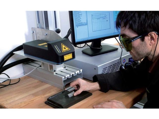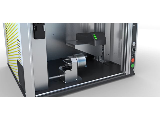 Die digitale Steuerung der Z-Achse (max. Weg 300 mm) macht die Markierung all Ihrer Teile möglich. Die optionale Drehachse ermöglicht eine 360°-Markierung.
