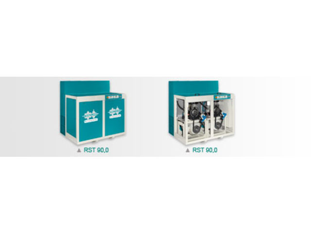Die Anlagen bestehen aus jeweils zwei identischen Verdichter-Einheiten mit separaten Antriebsmotoren und getrennten Kühlern, integriert in einer gemeinsamen Schalldämmbox.