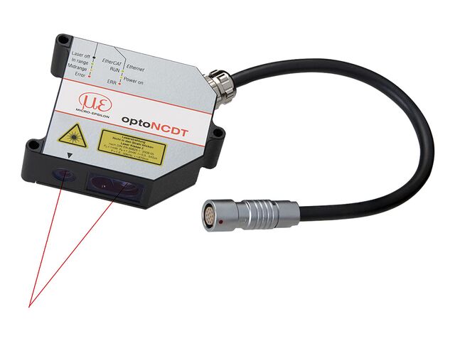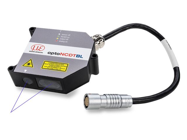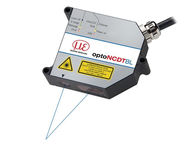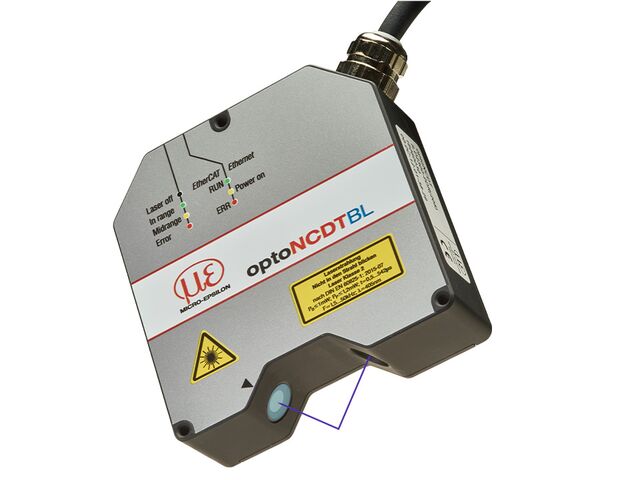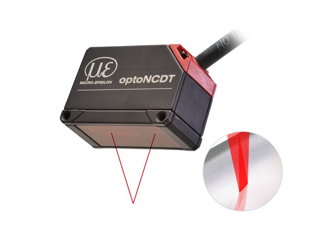 “ Lasersensor mit Spezialoptik mit ovalen Lichtfleck (kurze Laserlinie) Präzise Messung auf Metalloberflächen und strukturierten Oberflächen Integrierter Controller ”